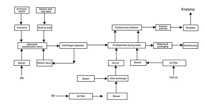 Затем раствор подвергается разделению методом центрифугирования, а исходный раствор возвращается в кристаллизатор для насыщения. Отделенные кристаллы сульфата аммония направляются в сушилку с кипящим слоем для сушки и охлаждения. Далее продукт дозируется, упаковывается и хранится.